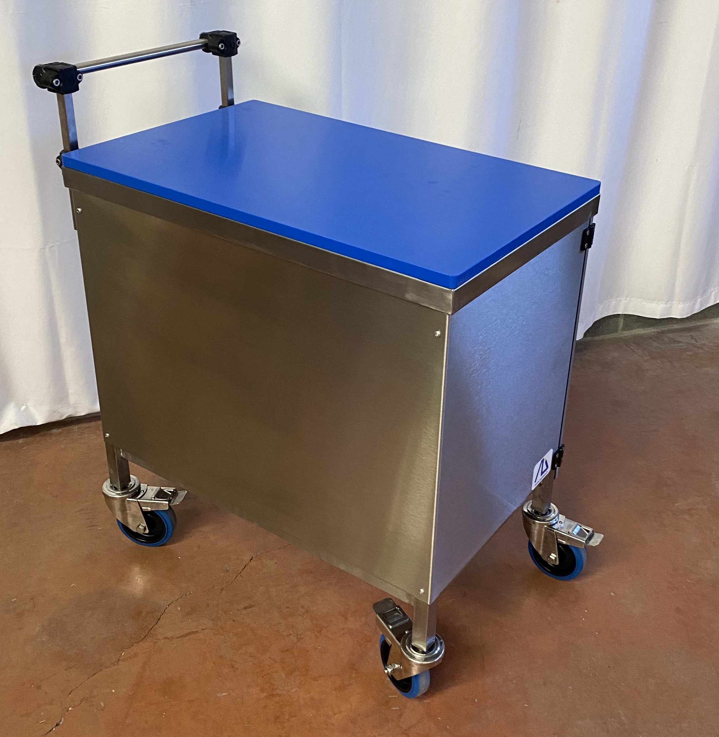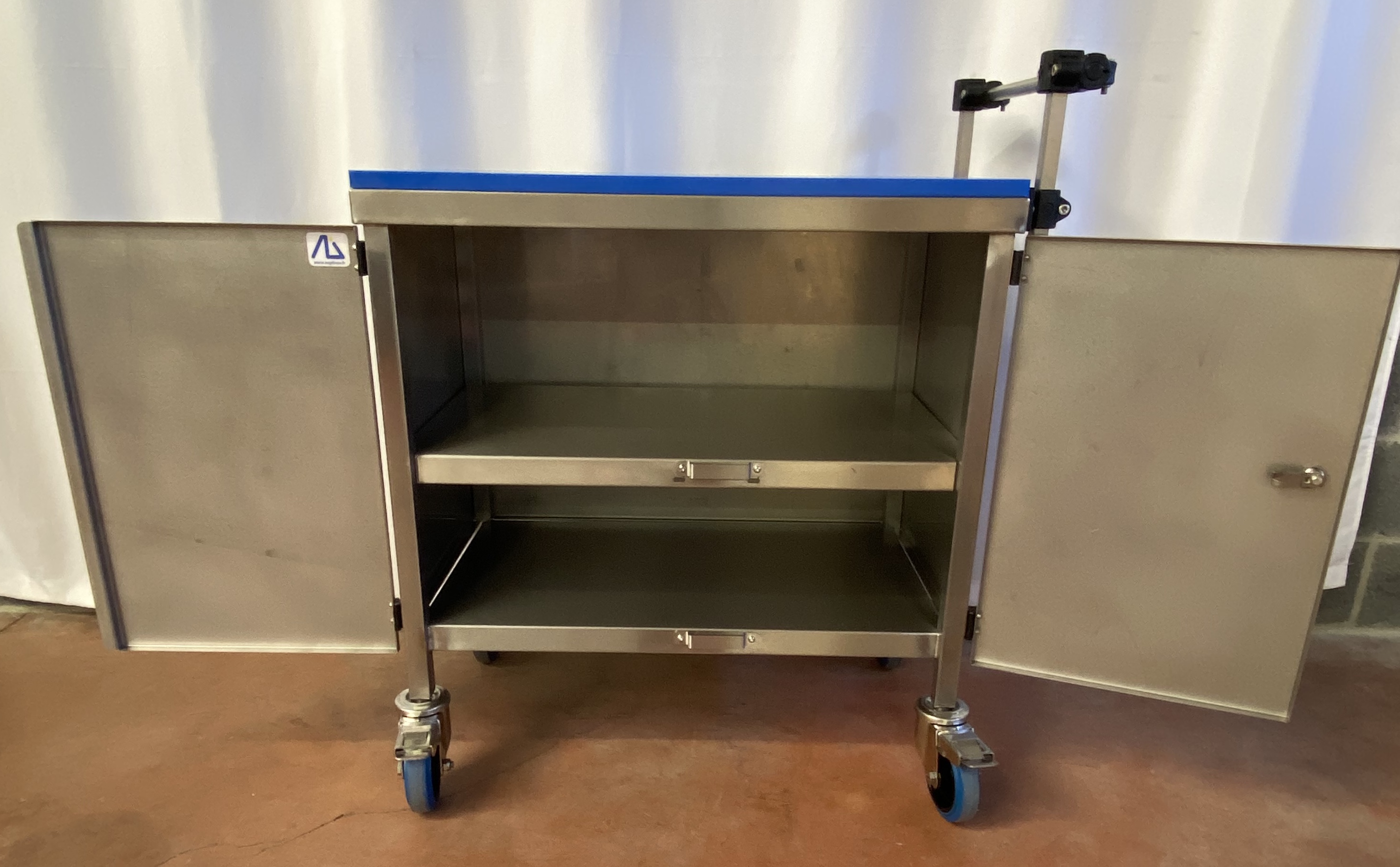 Desserte en inox sur-mesure, avec la possibilité de l'ouvrir. Desserte en inox sur-mesure