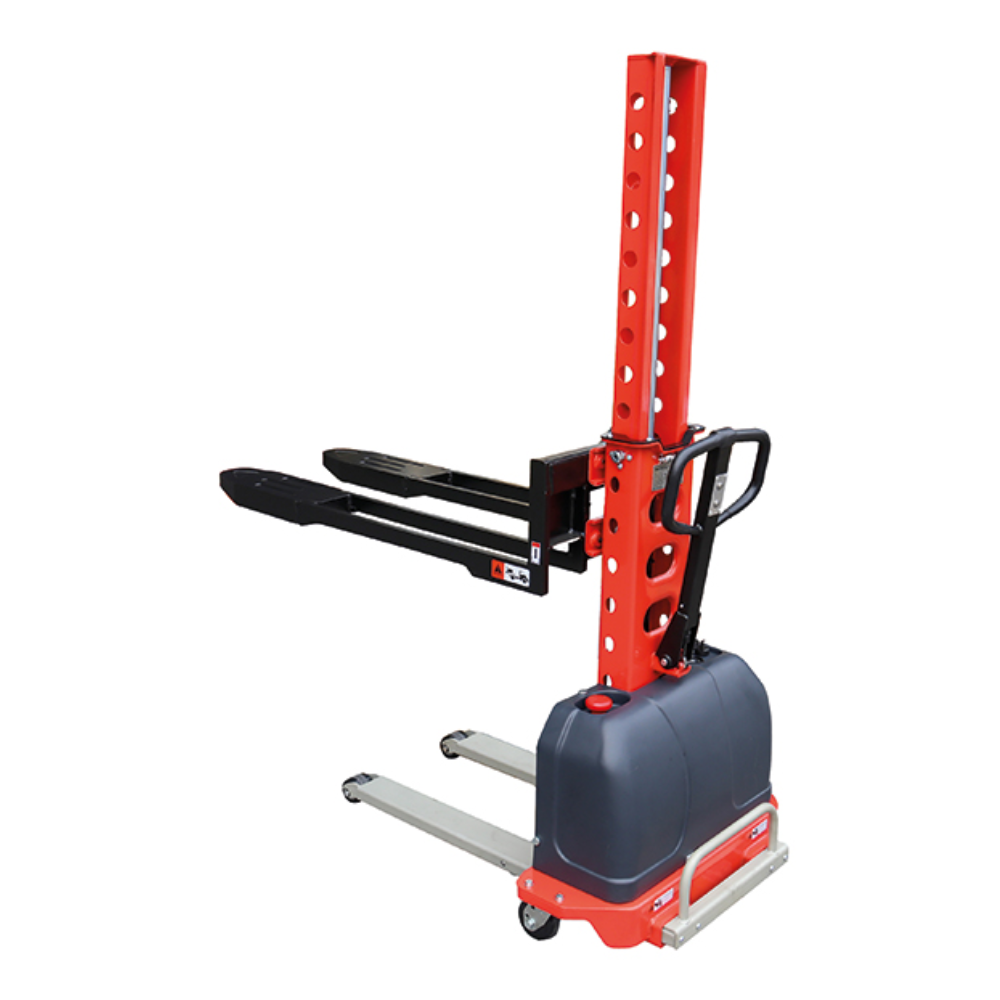 Le gerbeur auto-embarqué VL800 charge jusqu’à 500 kg et facilite le travail mobile : solution idéale pour charger une palette dans un utilitaire sans hayon, avec levée électrique et montée à bord guidée gràce aux longerons coulissants.