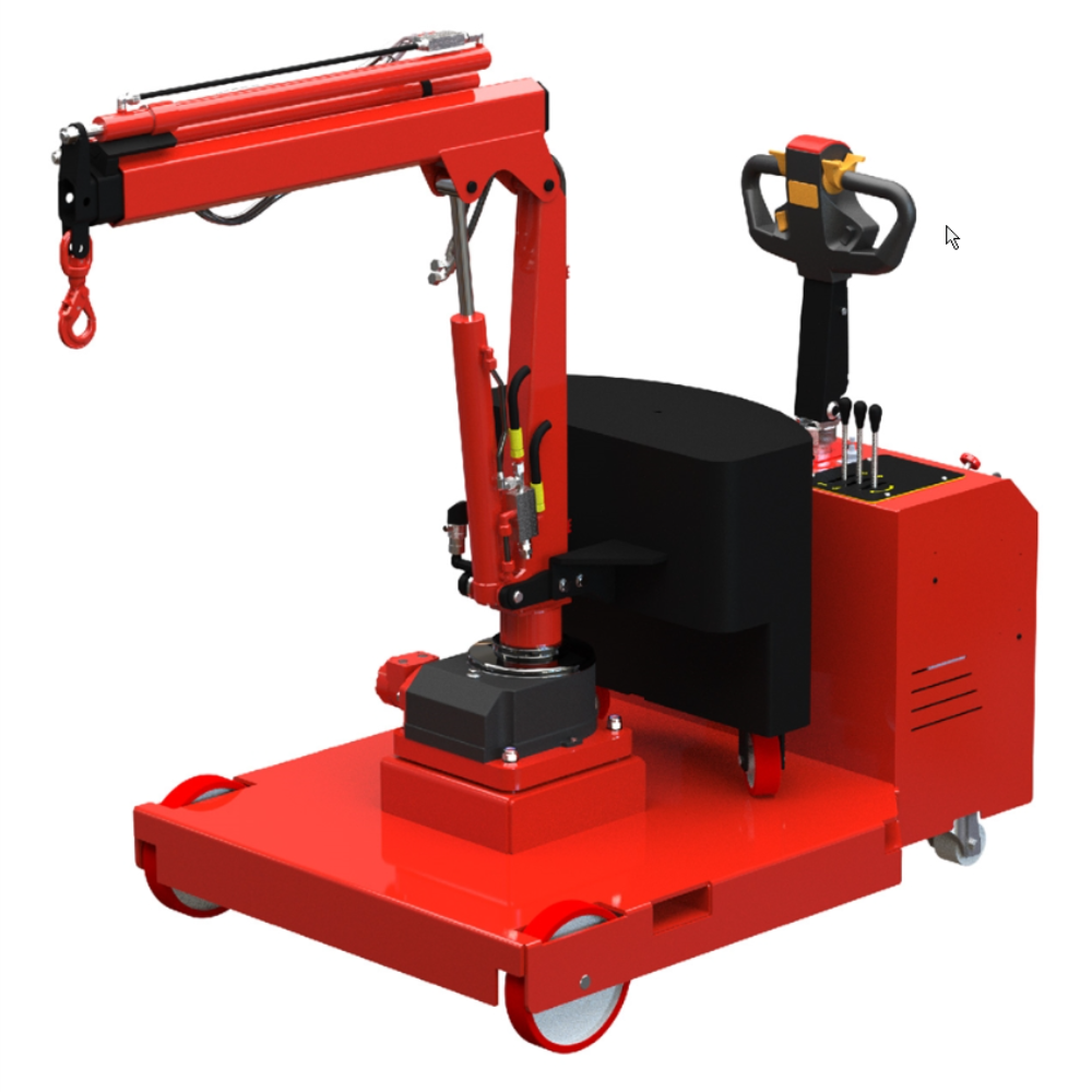 Le bras rotatif motorisé couvre un champ d’action sur 210°, permettant de déposer des charges avec une précision chirurgicale jusqu’à une portée de 2000 mm. L’opérateur pilote l’ensemble des mouvements depuis un timon ergonomique, garantissant un confort de conduite total et une visibilité parfaite sur la charge. Cette configuration permet un alignement postural sain, l’utilisateur n’ayant aucun effort de poussée ou de traction à fournir.